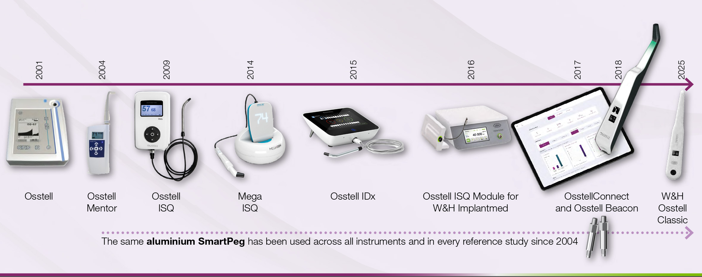 For over 25 years, Osstell has been at the forefront of implant stability measurement. From the creation of the ISQ method in 1999 to the launch of Osstell Beacon and OsstellConnect, our journey has been driven by one core principle: scientifically grounded decisions for optimal treatment timing.