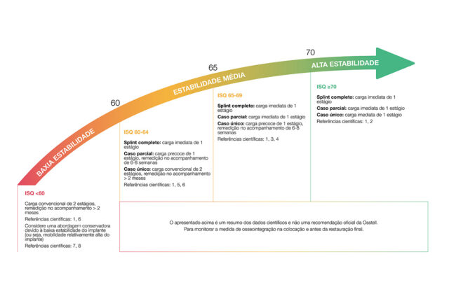 ISQ, ou Quociente de Estabilidade do Implante, é uma escala de 1 a 99 e é uma medida da estabilidade de um implante. A escala ISQ tem uma correlação não linear com a micromobilidade. Com mais de 1500 referências científicas, sabemos agora que alta estabilidade significa >70 ISQ, entre 60-69 é a estabilidade média e <60 ISQ é considerada baixa estabilidade.