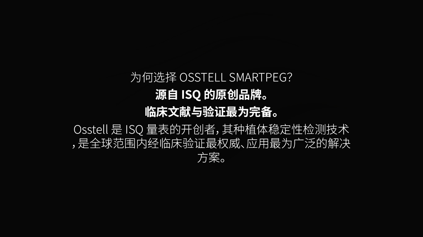 Osstell ISQ经过逾25年的临床和科学验证,得到1500多项科学研究的支持,最初SmartPeg用作实际测量设备。